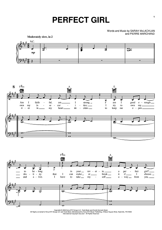 Digital Sheet Music for Perfect Girl by Sarah McLachlan, Pierre Marchand scored for Piano/Vocal/Chords; id:373803
