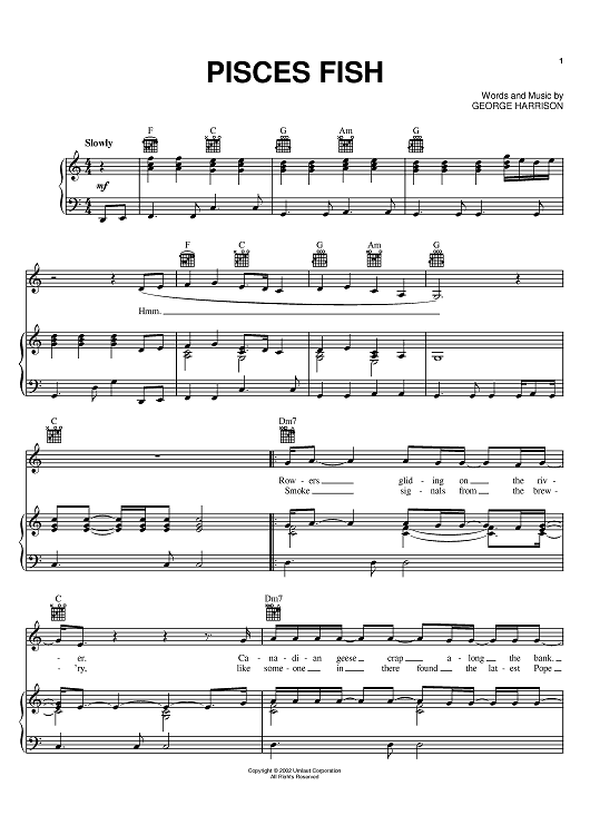 Digital Sheet Music for Pisces Fish by George Harrison scored for Piano/Vocal/Chords; id:372637
