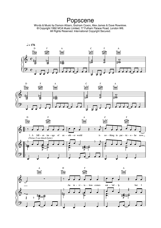 Digital Sheet Music for Popscene by Blur scored for Piano/Vocal/Chords; id:376191