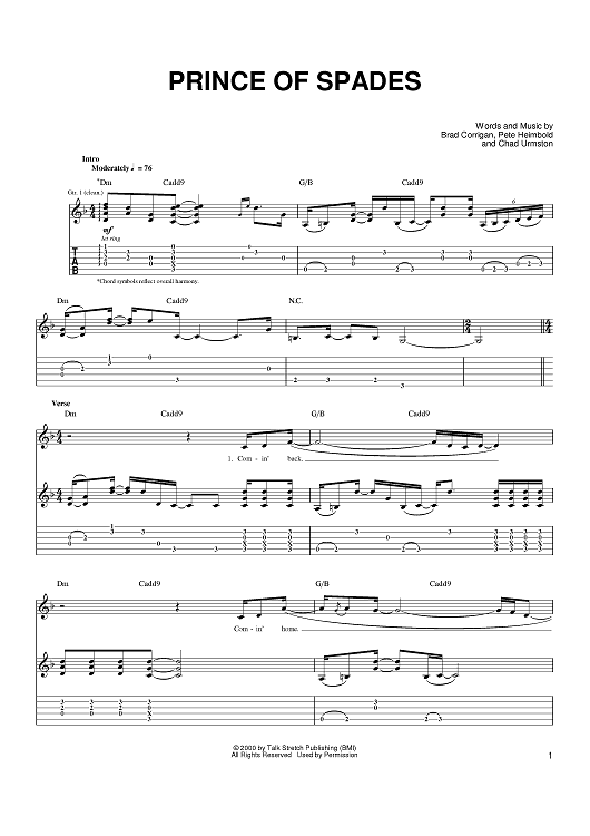 Digital Sheet Music for Prince Of Spades by Brad Corrigan, Dispatch, Pete Francis Heimbold, Chad Urmston scored for Guitar Tab; id:372990