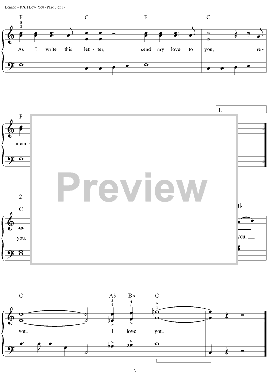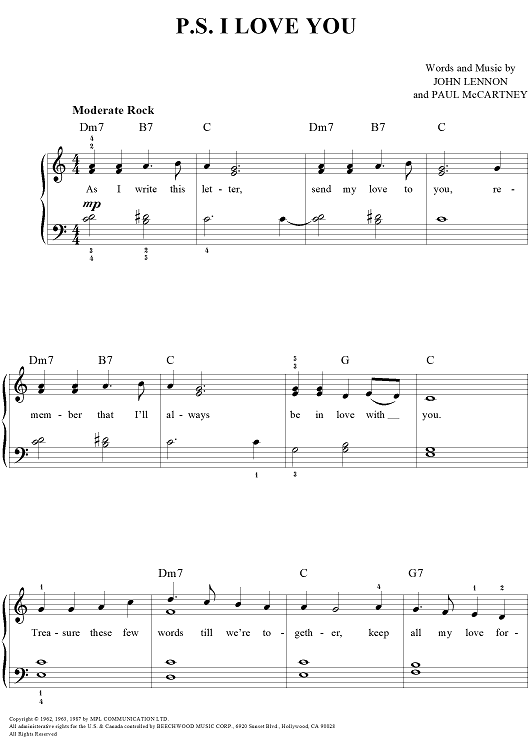 Digital Sheet Music for P.S. I Love You by Paul McCartney, The Beatles, John Lennon scored for Easy Piano/Vocal/Chords; id:450174