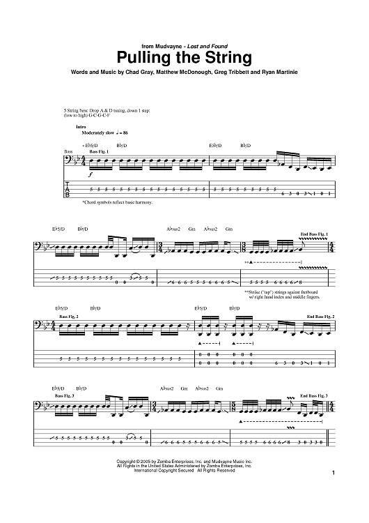 Digital Sheet Music for Pulling The String by Matthew McDonough, Gurrg, Ry-Know, Chad Gray, Mudvayne scored for Bass Tab; id:387598