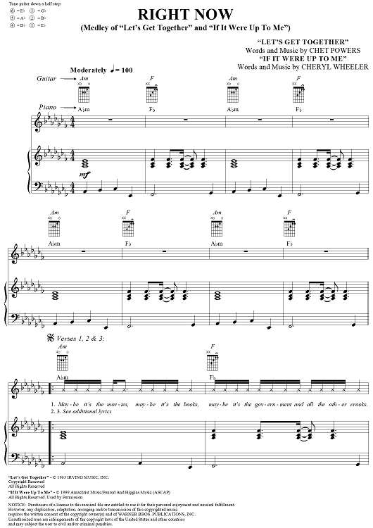 Digital Sheet Music for Right Now by Chris Gaines, Chet Powers, Cheryl Wheeler scored for Piano/Vocal/Chords; id:220717