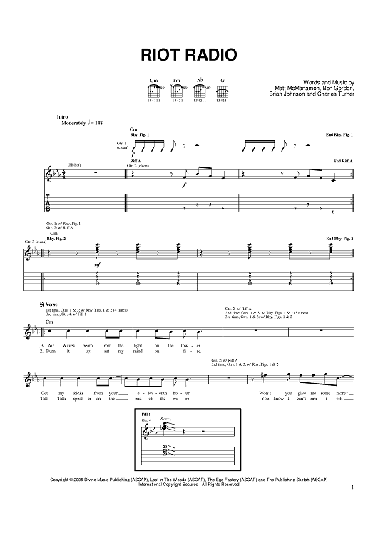 Digital Sheet Music for Riot Radio by The Dead 60s, Ben Gordon, Brian Johnson, Matt McManamon, Charles Turner scored for Guitar Tab; id:393969