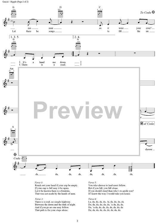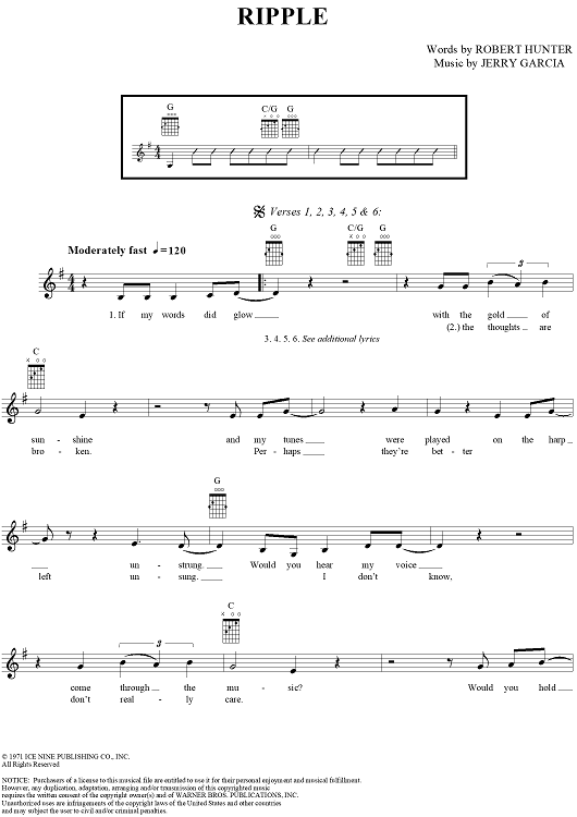 Digital Sheet Music for Ripple by Jerry Garcia, Robert Hunter scored for Easy Guitar/Vocal; id:291659