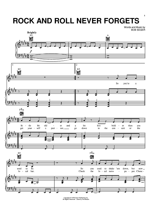 Digital Sheet Music for Rock And Roll Never Forgets by Bob Seger scored for Piano/Vocal/Chords; id:373419