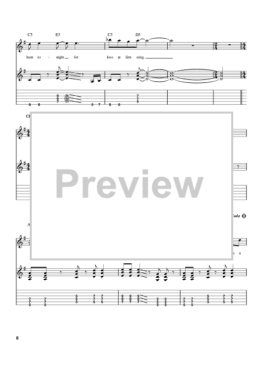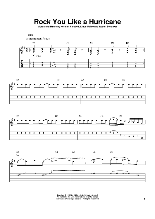 Digital Sheet Music for Rock You Like A Hurricane by Rudolf Schenker, Klaus Meine, Herman Rarebell, The Scorpions scored for Guitar Tab; id:374176