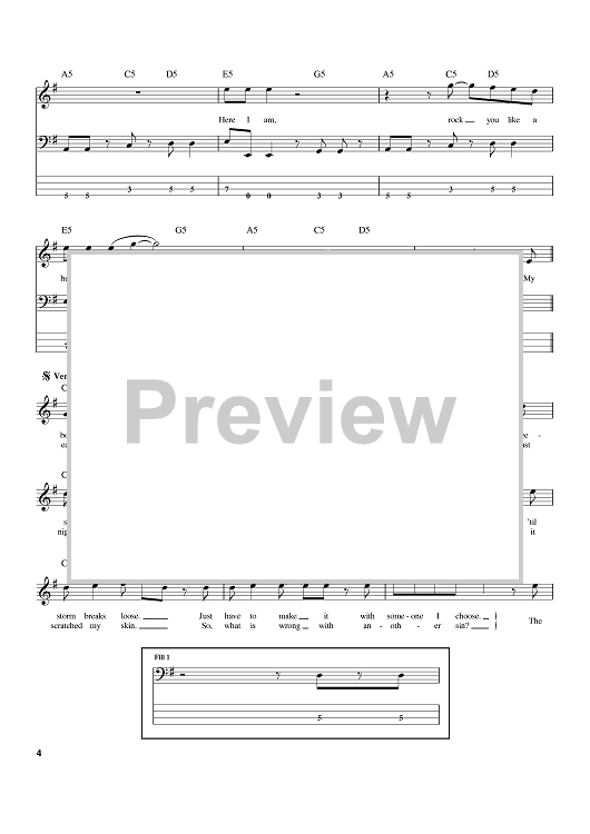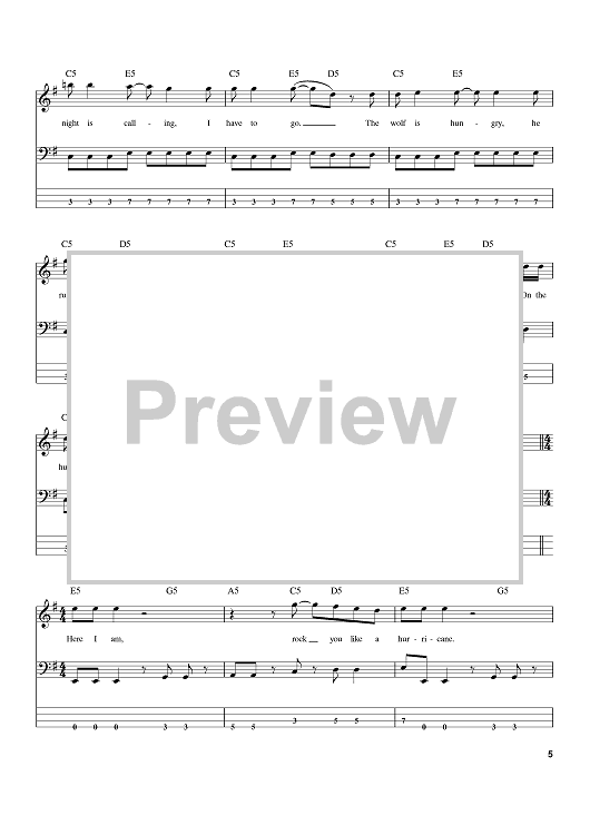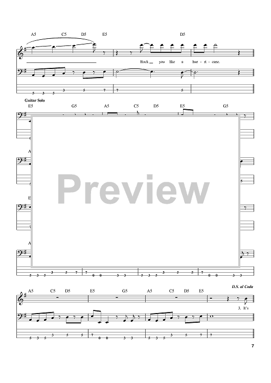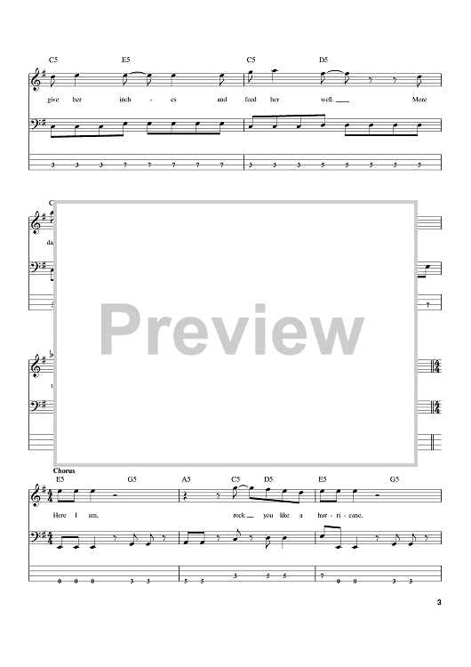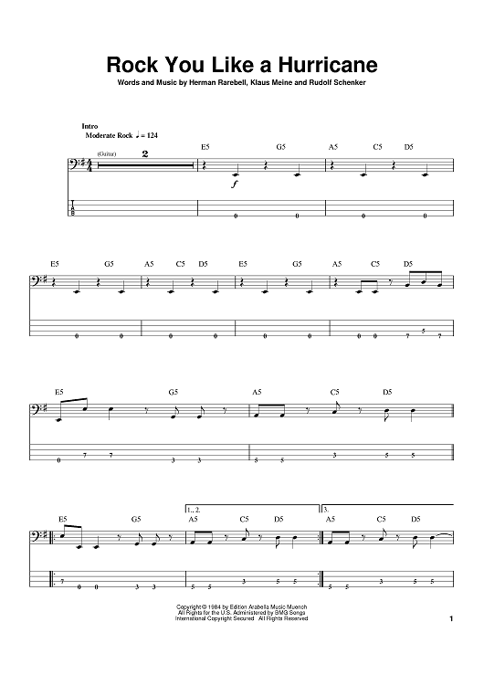 Digital Sheet Music for Rock You Like A Hurricane by Rudolf Schenker, Klaus Meine, Herman Rarebell, The Scorpions scored for Bass Tab; id:388554