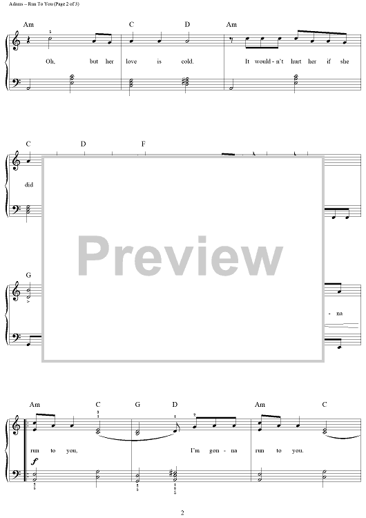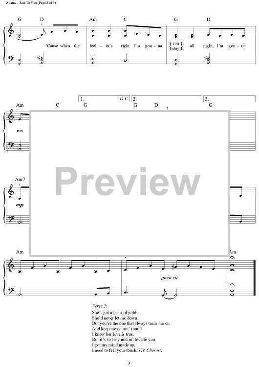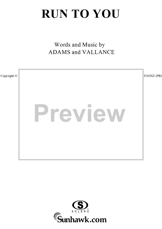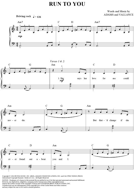 Digital Sheet Music for Run To You by Bryan Adams, Jim Vallance scored for Easy Piano/Vocal; id:120620