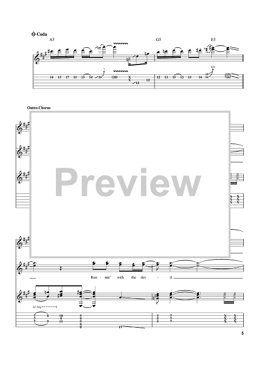 Digital Sheet Music for Runnin' With The Devil by Eddie Van Halen, David Lee Roth, Michael Anthony, Alex Van Halen, Van Halen scored for Guitar Tab; id:391086