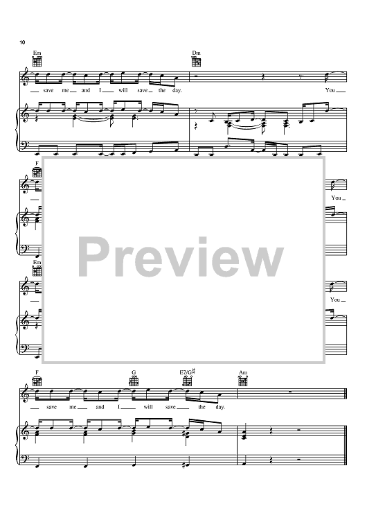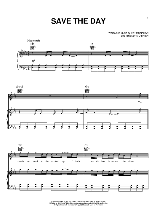 Digital Sheet Music for Save The Day by Brendan O'Brien, Pat Monahan, Train scored for Piano/Vocal/Chords; id:372495