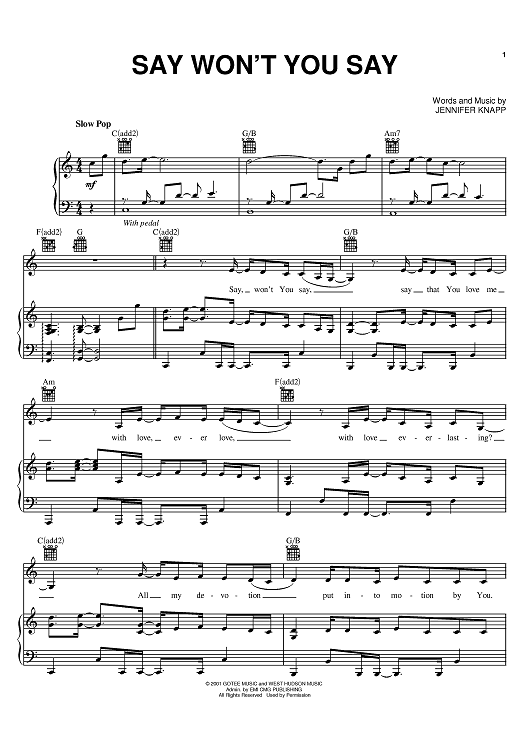"Say Won't You Say" Sheet Music by Jennifer Knapp