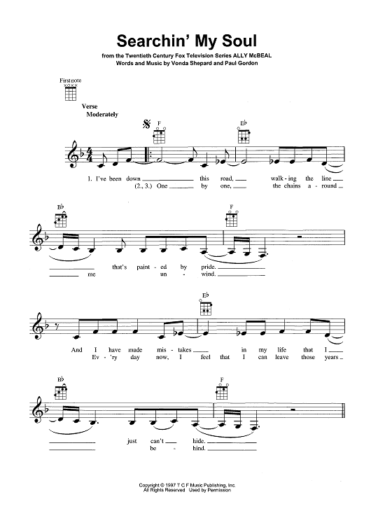 Digital Sheet Music for Searchin' My Soul by Vonda Shepard, Paul Gordon scored for Ukulele/Vocal; id:465394