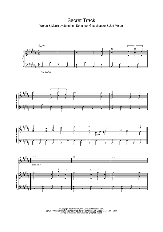 Digital Sheet Music for Secret Track by Jonathan Donahue, Mercury Rev scored for Piano/Vocal/Chords; id:382633