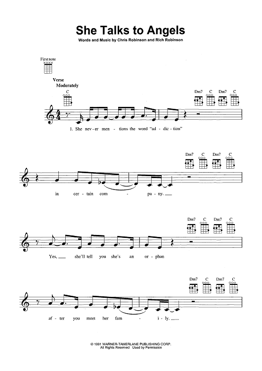 Digital Sheet Music for She Talks To Angels by Chris Robinson, Rich Robinson scored for Ukulele/Vocal; id:465388