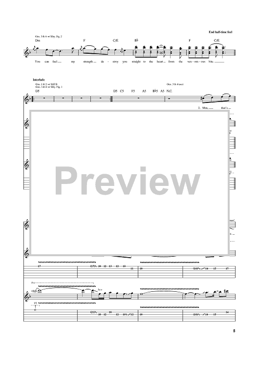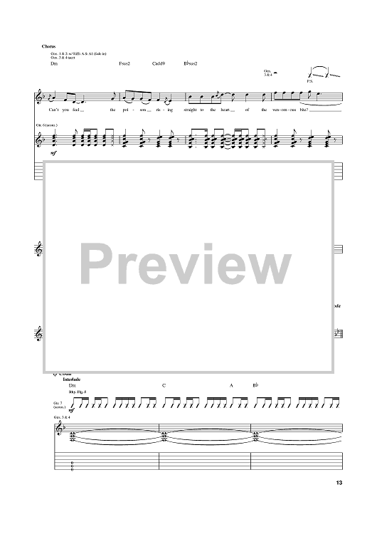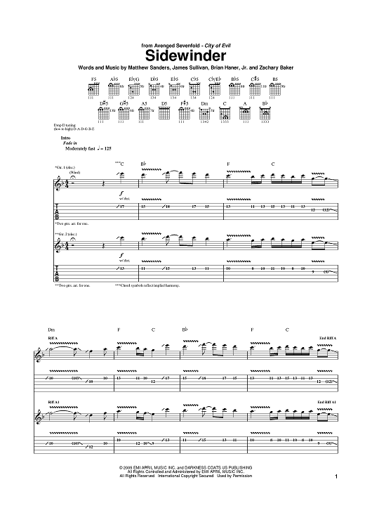Digital Sheet Music for Sidewinder by Avenged Sevenfold, Zachary Baker, Jr., Brian Haner, Matthew Sanders, James Sullivan scored for Guitar Tab; id:388760