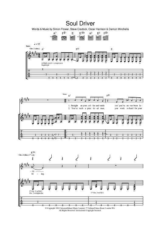 Digital Sheet Music for Soul Driver by Steve Cradock, Simon Fowler, Oscar Harrison, Damon Minchella, Ocean Colour Scene scored for Guitar Tab; id:393890