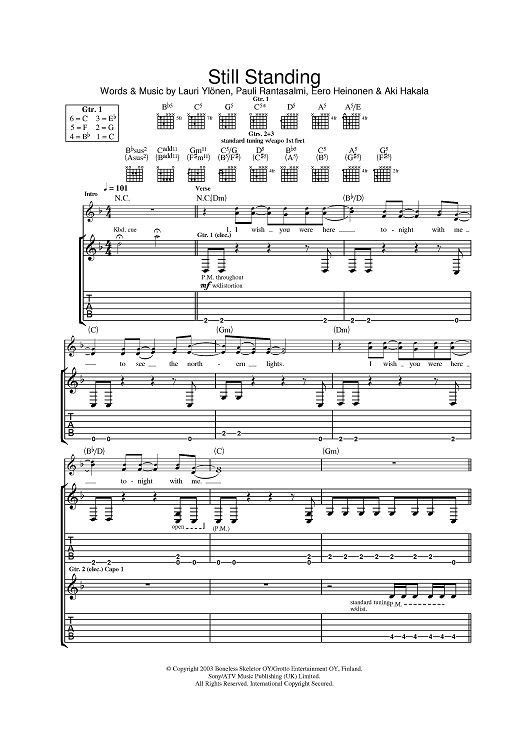 Digital Sheet Music for Still Standing by Eero Heinonen, Pauli Rantasalmi, The Rasmus, Lintu scored for Guitar Tab; id:382936