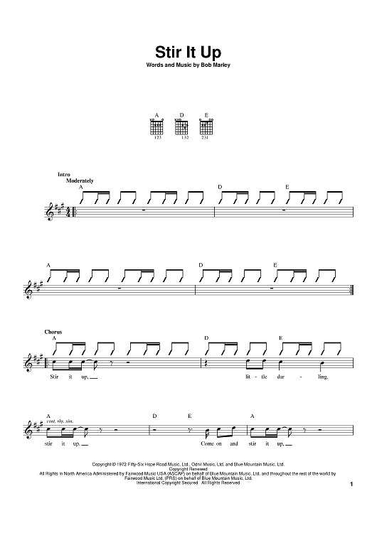 "Stir It Up" Sheet Music by Bob Marley