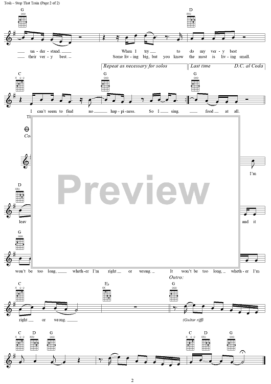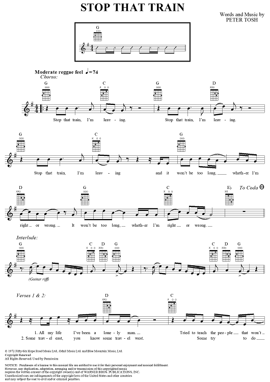 Digital Sheet Music for Stop That Train by Jerry Garcia, Peter Tosh scored for Easy Guitar/Vocal; id:291723
