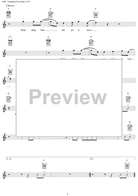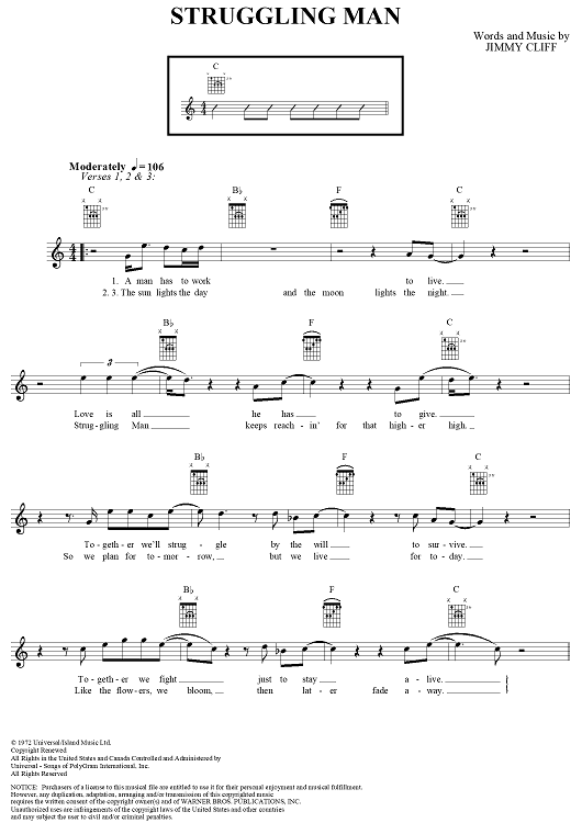 Digital Sheet Music for Struggling Man by Jerry Garcia, Jimmy Cliff scored for Easy Guitar/Vocal; id:291724