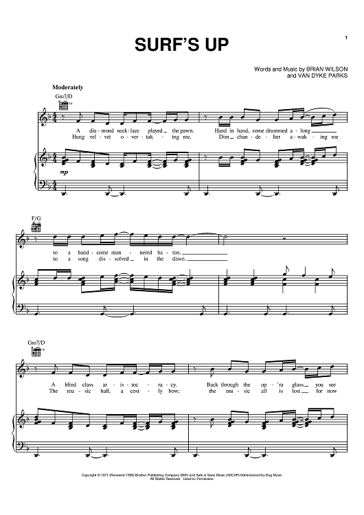 Digital Sheet Music for Surf's Up by Brian Wilson, The Beach Boys, Van Dyke Parks scored for Piano/Vocal/Chords; id:382282