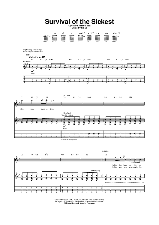 Digital Sheet Music for Survival Of The Sickest by Saliva, Josey Scott scored for Guitar Tab; id:383150