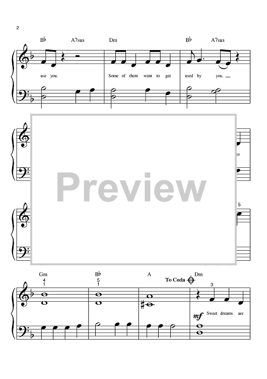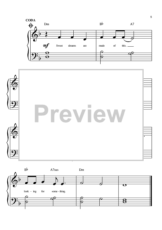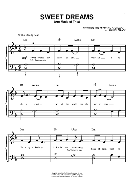 Digital Sheet Music for Sweet Dreams (Are Made Of This) by Annie Lennox, Dave Stewart, Nas, Eurythmics scored for Big Note Piano; id:369332