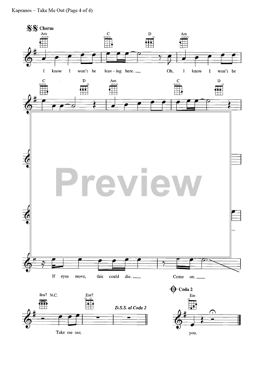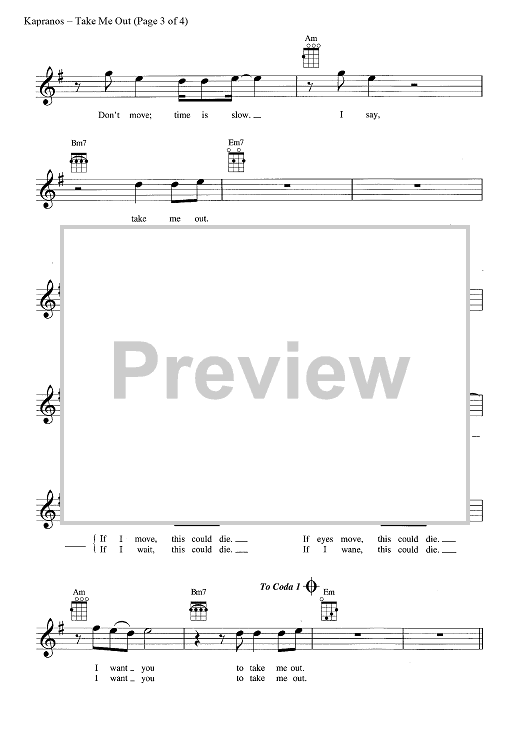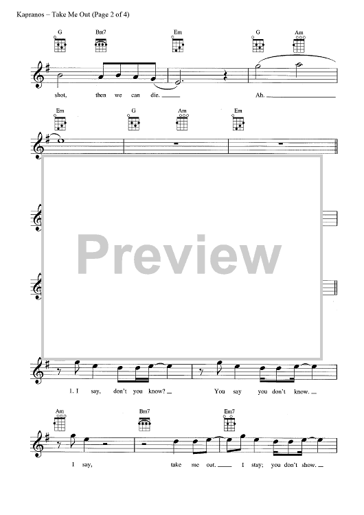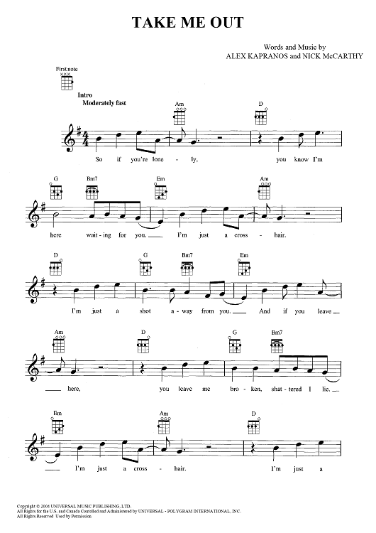 Digital Sheet Music for Take Me Out by Franz Ferdinand, Alexander Kapranos, Nicholas McCarthy scored for Ukulele/Vocal; id:444289