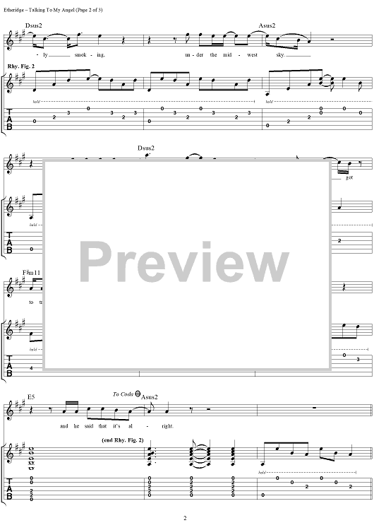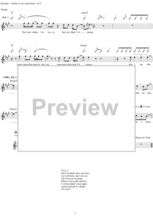 "Talking To My Angel" Sheet Music by Melissa Etheridge
