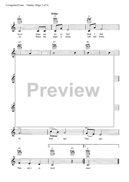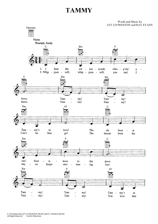 Digital Sheet Music for Tammy by Jay Livingston, Ray Evans, Debbie Reynolds scored for Ukulele/Vocal; id:447698