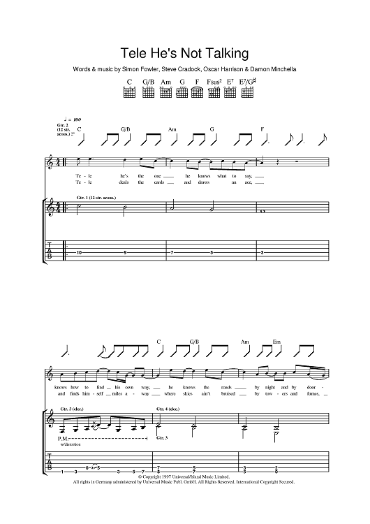 Digital Sheet Music for Tele He's Not Talking by Steve Cradock, Simon Fowler, Oscar Harrison, Damon Minchella, Ocean Colour Scene scored for Guitar Tab; id:393870