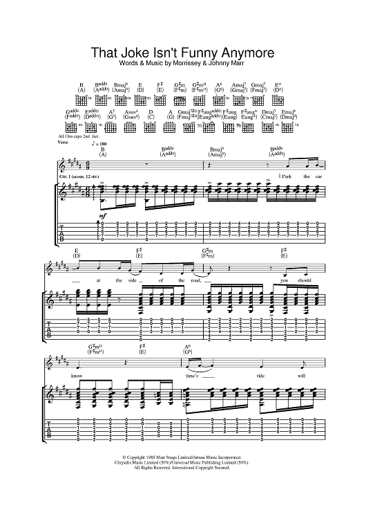 Digital Sheet Music for That Joke Isn't Funny Anymore by Johnny Marr, The Smiths, Morrissey scored for Guitar Tab; id:386995
