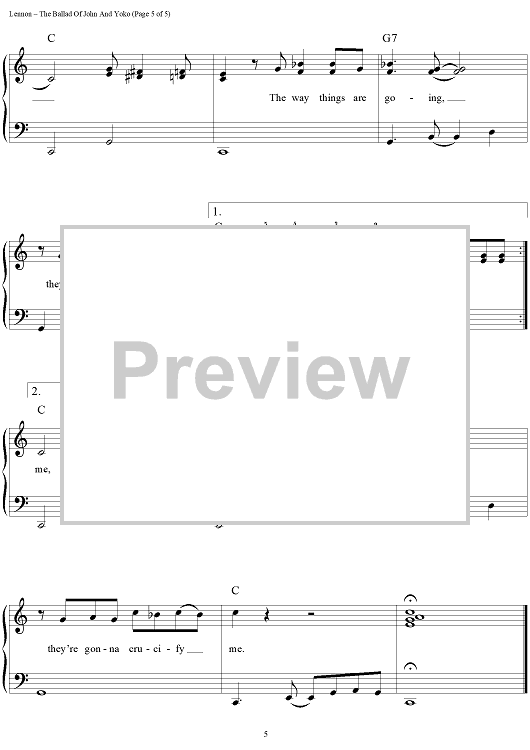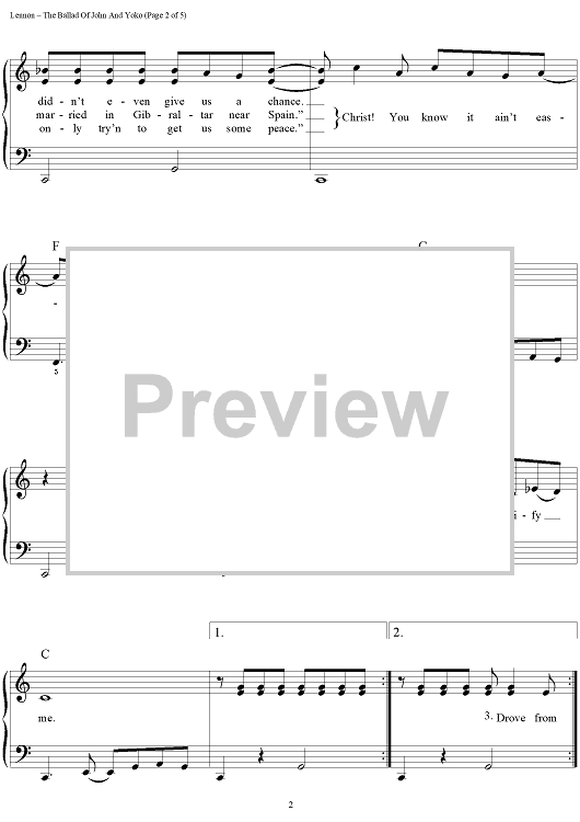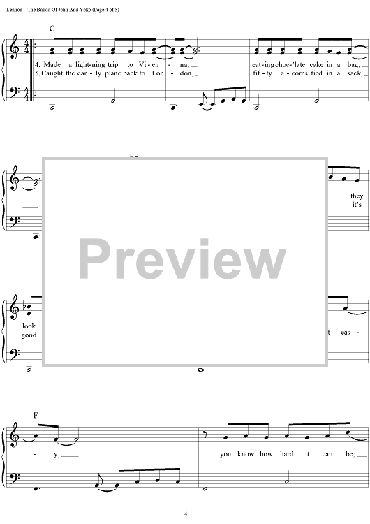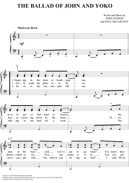 Digital Sheet Music for The Ballad of John and Yoko by Paul McCartney, The Beatles, John Lennon scored for Easy Piano/Vocal/Chords; id:448115