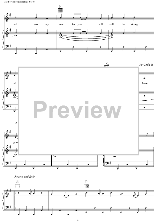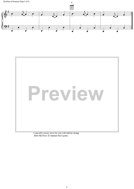 Digital Sheet Music for The Boys of Summer by Don Henley, Mike Campbell scored for Piano/Vocal/Chords; id:110276