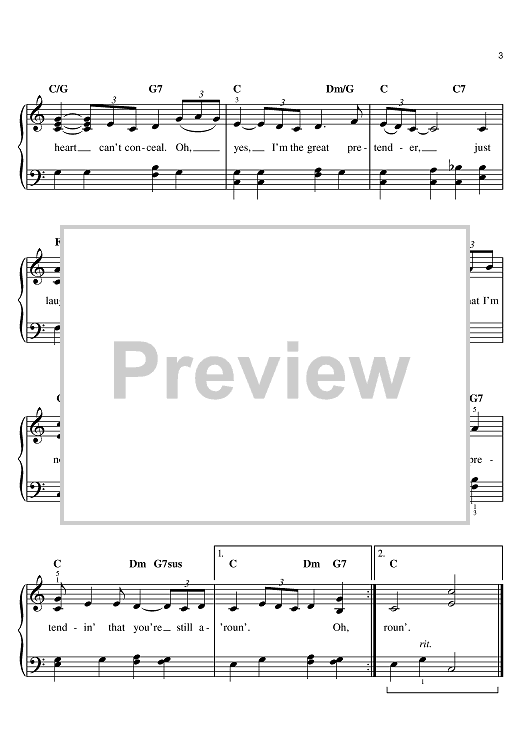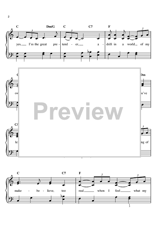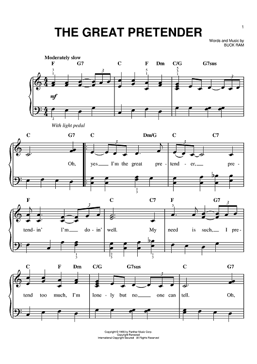 Digital Sheet Music for The Great Pretender by The Platters, Buck Ram scored for Easy Piano; id:369958