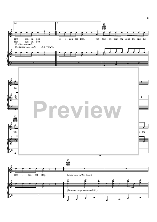 Digital Sheet Music for The Horizontal Bop by Bob Seger scored for Piano/Vocal/Chords; id:373424