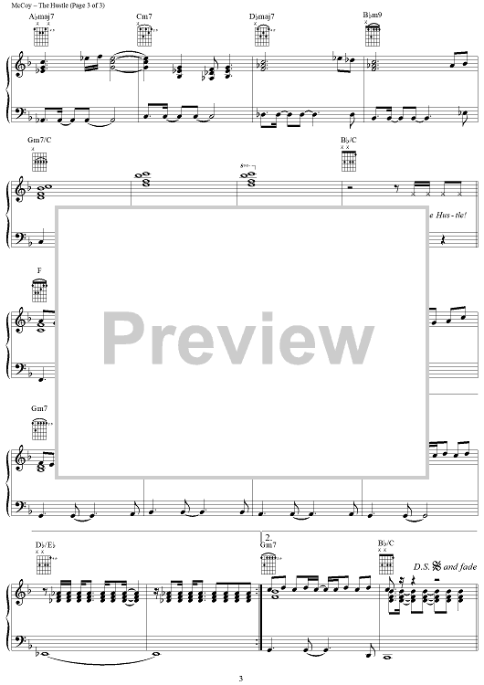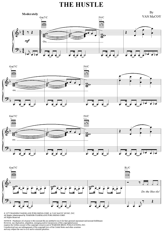 Digital Sheet Music for The Hustle by Van McCoy scored for Piano/Vocal/Chords; id:251587
