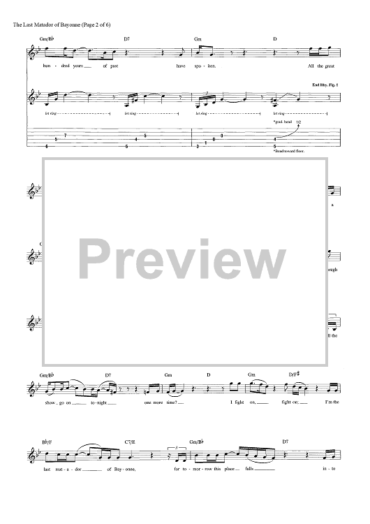 "The Last Matador of Bayonne" Sheet Music by Joe Bonamassa