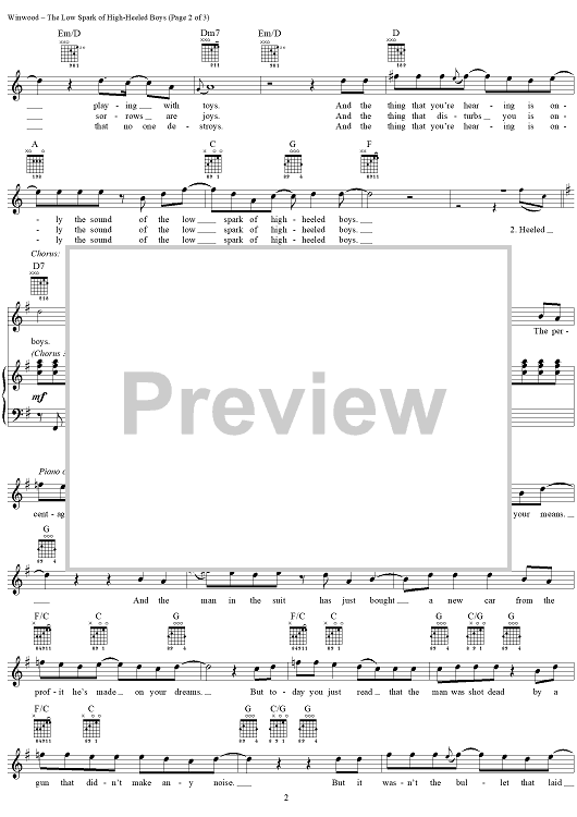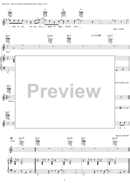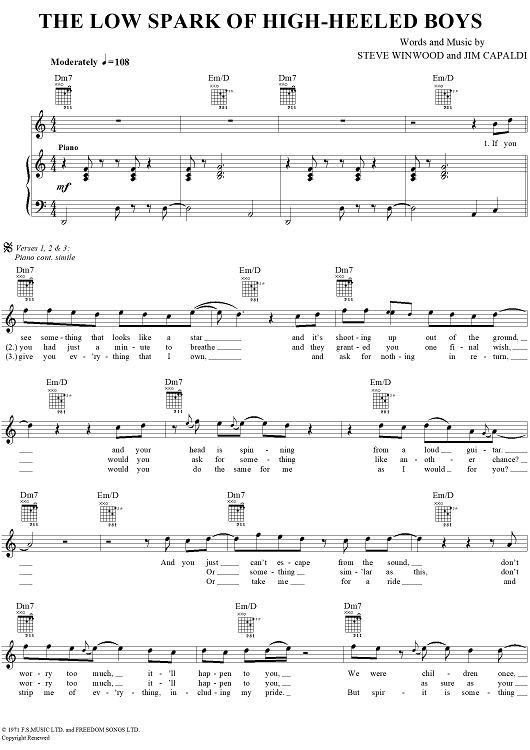 Digital Sheet Music for The Low Spark of High-Heeled Boys by Traffic, Steve Winwood, Jim Capaldi scored for Piano/Vocal/Chords; id:303168