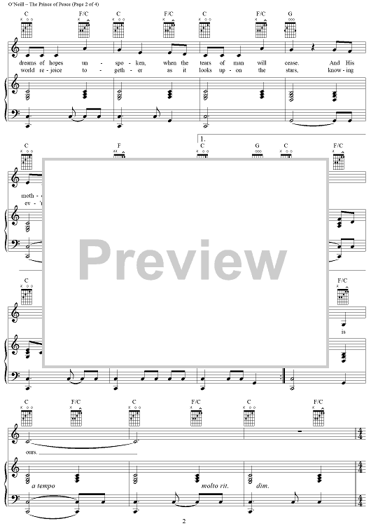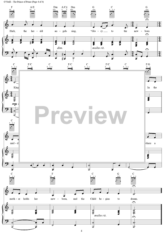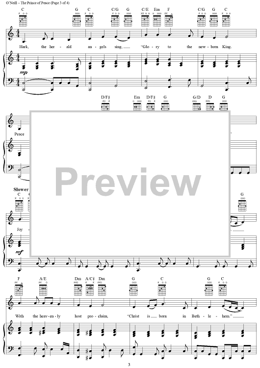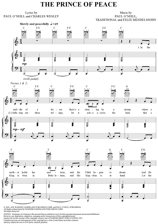 Digital Sheet Music for The Prince of Peace by Felix Mendelssohn, Charles Wesley, Trans-Siberian Orchestra, Paul O'Neill scored for Piano/Vocal/Chords; id:253909