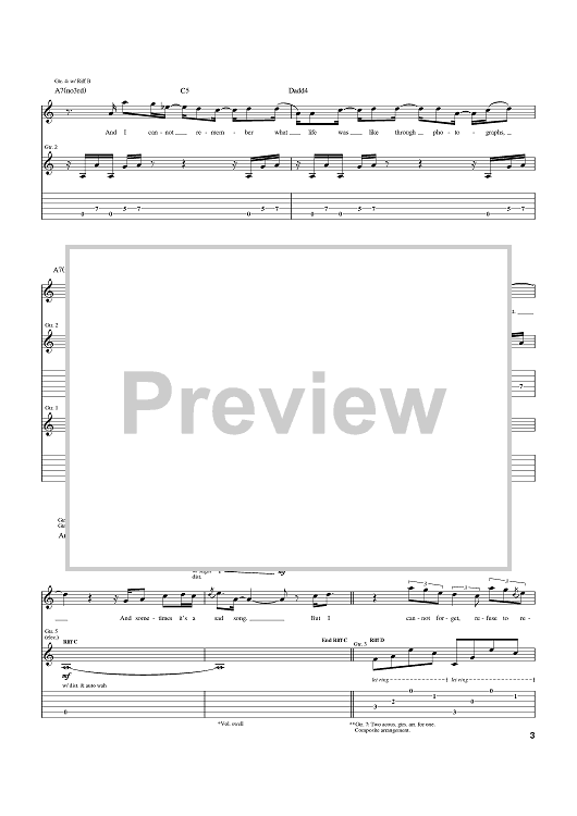 Digital Sheet Music for The Sun by Adam Levine, Maroon 5 scored for Guitar Tab; id:373490