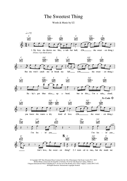 Digital Sheet Music for The Sweetest Thing by U2 scored for Lead Sheet; id:376729