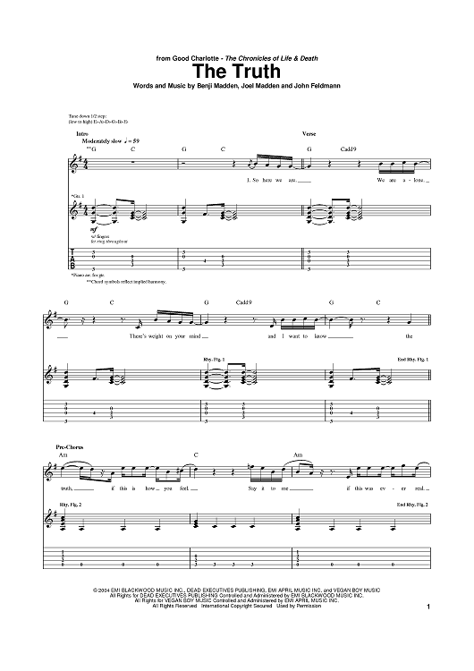 Digital Sheet Music for The Truth by Benji Madden, Joel Madden, Good Charlotte, John Feldmann scored for Guitar Tab; id:383300