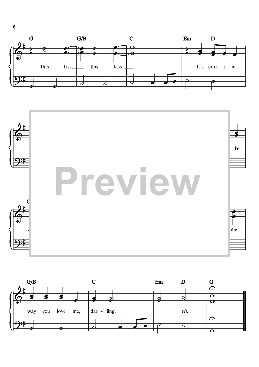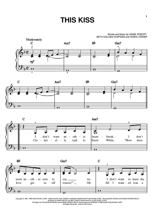 Digital Sheet Music for This Kiss by Faith Hill, Beth Nielsen Chapman, Robin Lerner, Annie Roboff scored for Easy Piano; id:367399