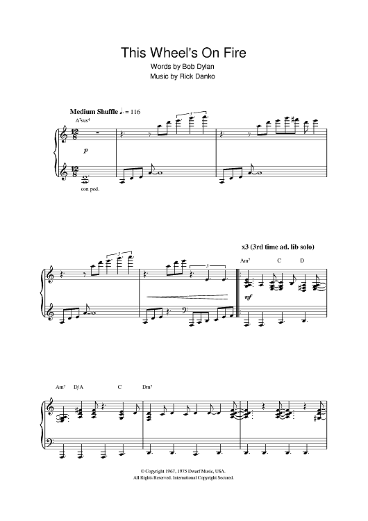 Digital Sheet Music for This Wheel's On Fire by Bob Dylan, The Band, Rick Danko scored for Piano; id:386822