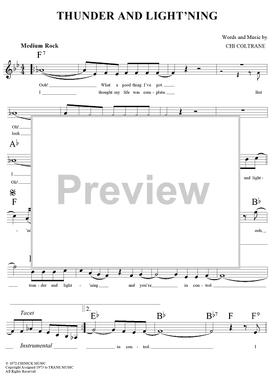 Digital Sheet Music for Thunder and Lightning by Chi Coltrane scored for Lead Sheet; id:271836