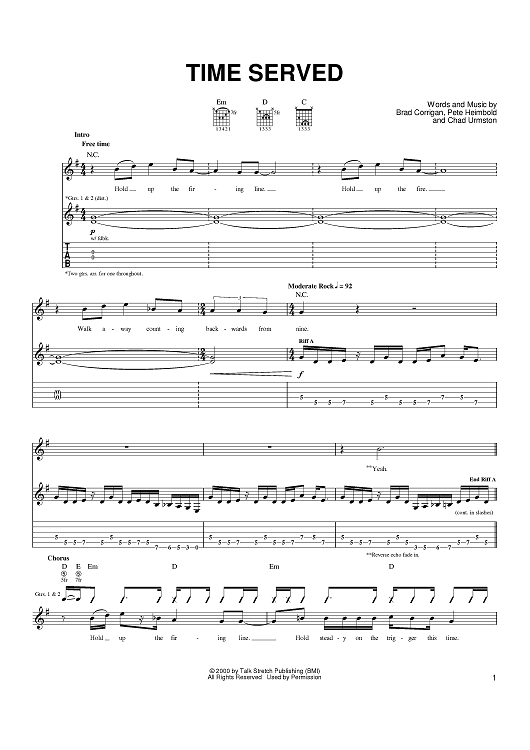 Digital Sheet Music for Time Served by Brad Corrigan, Dispatch, Pete Francis Heimbold, Chad Urmston scored for Guitar Tab; id:372991