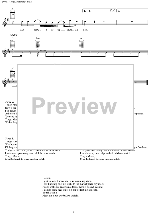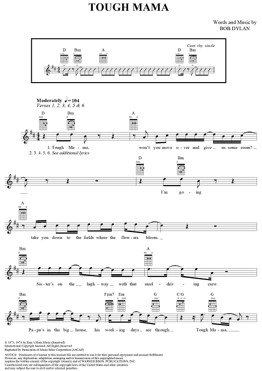 Digital Sheet Music for Tough Mama by Bob Dylan, Jerry Garcia scored for Easy Guitar/Vocal; id:291736