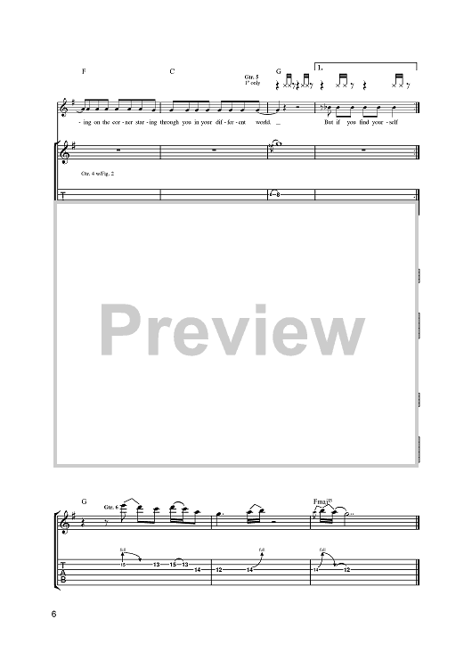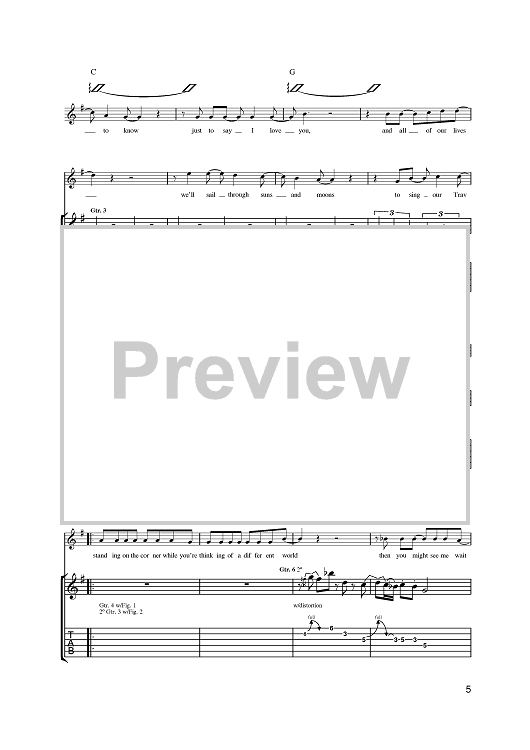 Digital Sheet Music for Traveller's Tune by Steve Cradock, Simon Fowler, Oscar Harrison, Damon Minchella, Ocean Colour Scene scored for Guitar Tab; id:393866